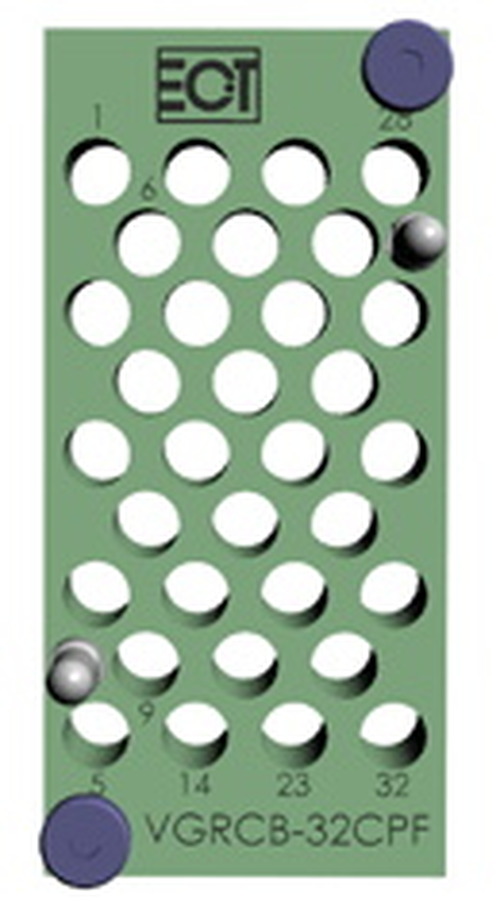 Provides 32 contacts for coax, power or a combination of both styles. Coax bandwidth– 1 GHz. Power contact – 50 Amps. Contacts sold separately. Mating block – VGFCB-32CPF. Includes: 2 installed alignment pins. Can be used for all fixtures / receivers with a Pylon® interface channel. |